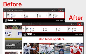 NHL.com Nascondi Punteggiè un'app gratuita per Chrome, appartenente alla categoria 'Componenti aggiuntivi e Strumenti'.
